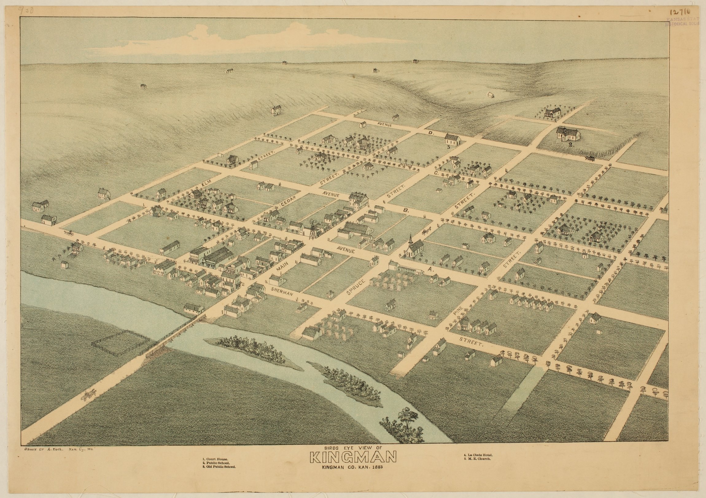 2. Koch, Augustus. Kingman, Kansas, 1883: Bird's Eye View. 1883.